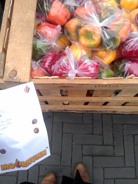 Then we're off to the market, my favorite part of grocery shopping. This time of year is my favorite, since everything I love is super cheap. Next stop is the supermarket, and we get some birthday presents for my cousins. Back home Imre starts preparing a pasta sauce with some left over veggies, and I set out to get one last birthday present. I feel like I'm more on my bike than off it today.